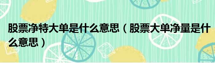大家好,小皮来为大家解答以上问题。股票净特大单是什么意思,股票大单净量是什么意思这个很多人还不清楚,现在一起跟着小编来瞧瞧吧!