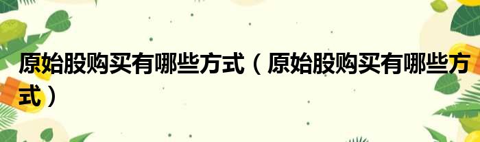 大家好,小皮来为大家解答以上问题。原始股购买有哪些方式,原始股购买有哪些方式这个很多人还不清楚,现在一起跟着小编来瞧瞧吧!
