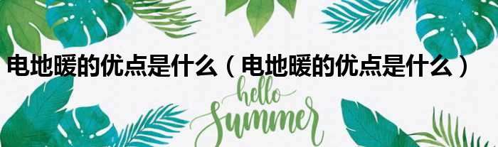 关于电地暖的优点是什么,电地暖的优点是什么的介绍到此结束,希望对大家有所帮助。