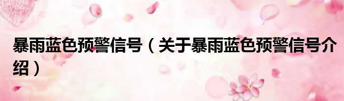 关于暴雨蓝色预警信号到此分享完毕,希望能帮助到您。