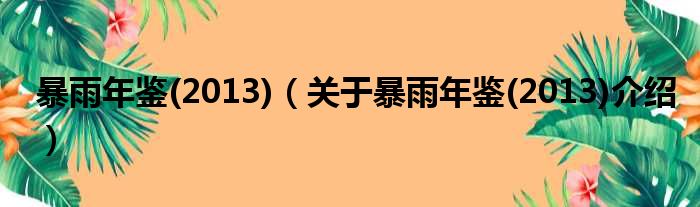 免责声明:本文由用户上传,如有侵权请联系删除!大家好,小钱来为大家解答以上的问题。暴雨年鉴(2013),关于暴雨年鉴(2013)介绍这个很多人还不知道,现在让我们一起来看看吧!
