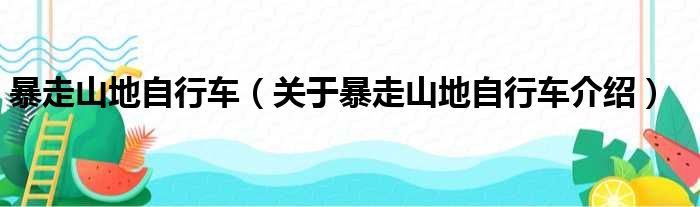 关于暴走山地自行车到此分享完毕,希望能帮助到您。