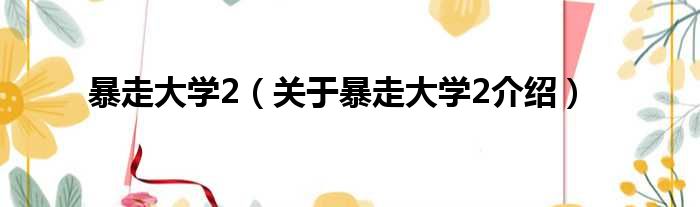 大家好,小钱来为大家解答以上的问题。暴走大学2,关于暴走大学2介绍这个很多人还不知道,现在让我们一起来看看吧!