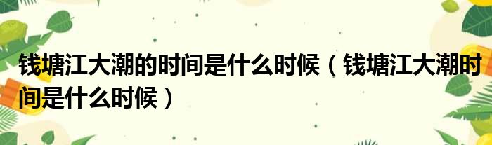 关于钱塘江大潮的时间是什么时候,钱塘江大潮时间是什么时候的介绍到此结束,希望对大家有所帮助。