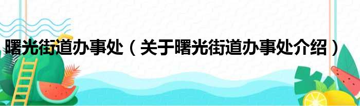 关于曙光街道办事处到此分享完毕,希望能帮助到您。