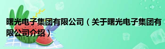 关于曙光电子集团有限公司到此分享完毕,希望能帮助到您。