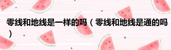 关于零线和地线是一样的吗,零线和地线是通的吗的介绍到此结束,希望对大家有所帮助。