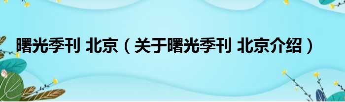 关于曙光季刊 北京到此分享完毕,希望能帮助到您。