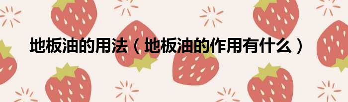 关于地板油的用法,地板油的作用有什么的介绍到此结束,希望对大家有所帮助。