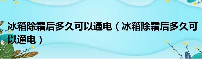 关于冰箱除霜后多久可以通电,冰箱除霜后多久可以通电的介绍到此结束,希望对大家有所帮助。