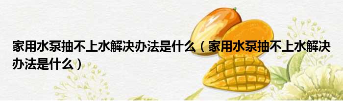关于家用水泵抽不上水解决办法是什么,家用水泵抽不上水解决办法是什么的介绍到此结束,希望对大家有所帮助。