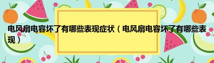 关于电风扇电容坏了有哪些表现症状,电风扇电容坏了有哪些表现的介绍到此结束,希望对大家有所帮助。