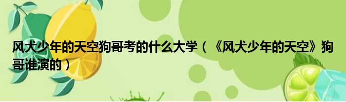大家好,小皮来为大家解答以上问题。风犬少年的天空狗哥考的什么大学,《风犬少年的天空》狗哥谁演的这个很多人还不清楚,现在一起跟着小编来瞧瞧吧!