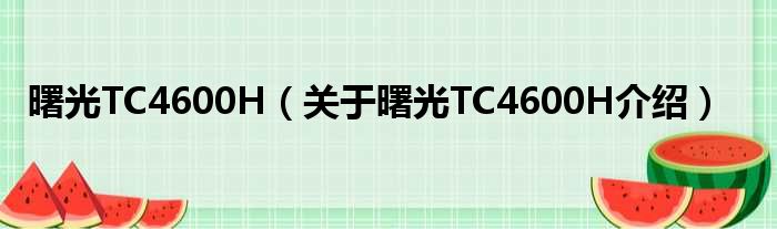 关于曙光TC4600H到此分享完毕,希望能帮助到您。