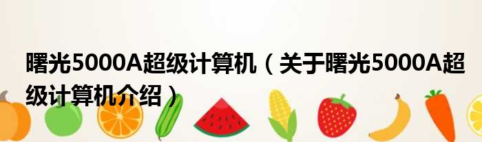 关于曙光5000A超级计算机到此分享完毕,希望能帮助到您。
