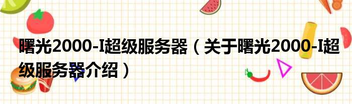 大家好,小钱来为大家解答以上的问题。曙光2000-I超级服务器,关于曙光2000-I超级服务器介绍这个很多人还不知道,现在让我们一起来看看吧!