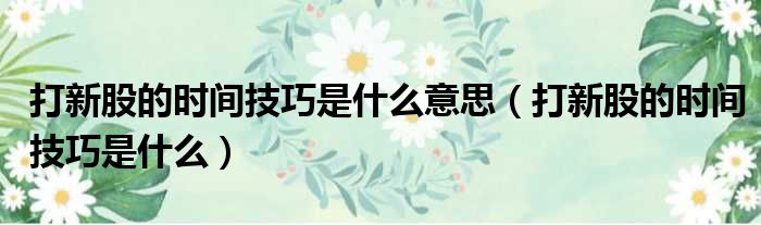 大家好,小皮来为大家解答以上问题。打新股的时间技巧是什么意思,打新股的时间技巧是什么这个很多人还不清楚,现在一起跟着小编来瞧瞧吧!