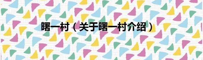 免责声明:本文由用户上传,如有侵权请联系删除!大家好,小钱来为大家解答以上的问题。曙一村,关于曙一村介绍这个很多人还不知道,现在让我们一起来看看吧!