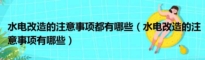 关于水电改造的注意事项都有哪些,水电改造的注意事项有哪些的介绍到此结束,希望对大家有所帮助。