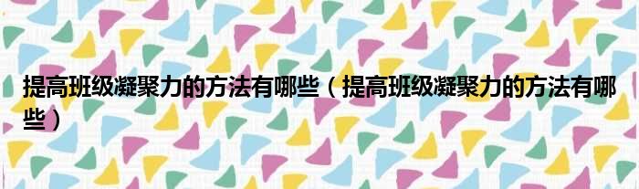 关于提高班级凝聚力的方法有哪些,提高班级凝聚力的方法有哪些的介绍到此结束,希望对大家有所帮助。