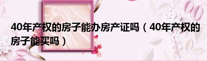 大家好,小皮来为大家解答以上问题。40年产权的房子能办房产证吗,40年产权的房子能买吗这个很多人还不清楚,现在一起跟着小编来瞧瞧吧!