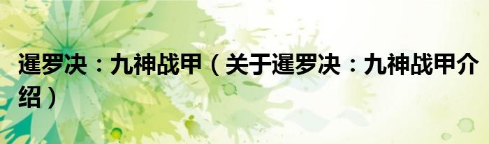 关于暹罗决:九神战甲到此分享完毕,希望能帮助到您。