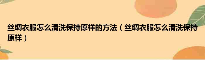 关于丝绸衣服怎么清洗保持原样的方法,丝绸衣服怎么清洗保持原样的介绍到此结束,希望对大家有所帮助。
