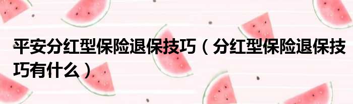 大家好,小皮来为大家解答以上问题。平安分红型保险退保技巧,分红型保险退保技巧有什么这个很多人还不清楚,现在一起跟着小编来瞧瞧吧!