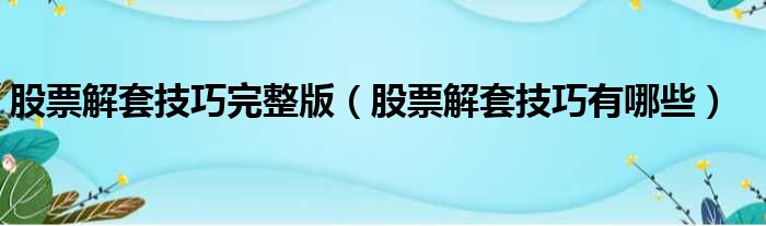 大家好,小皮来为大家解答以上问题。股票解套技巧完整版,股票解套技巧有哪些这个很多人还不清楚,现在一起跟着小编来瞧瞧吧!