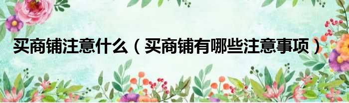 关于买商铺注意什么,买商铺有哪些注意事项的介绍到此结束,希望对大家有所帮助。