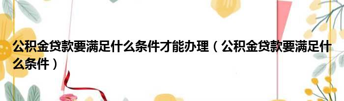 关于公积金贷款要满足什么条件才能办理,公积金贷款要满足什么条件的介绍到此结束,希望对大家有所帮助。