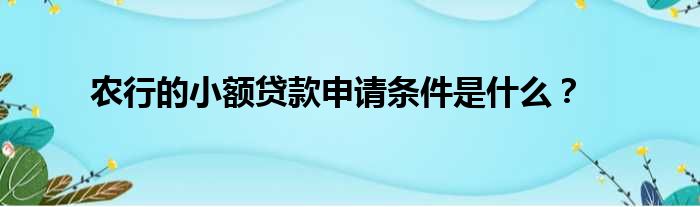关于农行的小额贷款申请条件是什么?的介绍到此结束,希望对大家有所帮助。