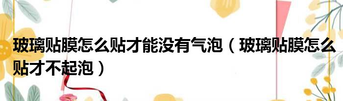 关于玻璃贴膜怎么贴才能没有气泡,玻璃贴膜怎么贴才不起泡的介绍到此结束,希望对大家有所帮助。