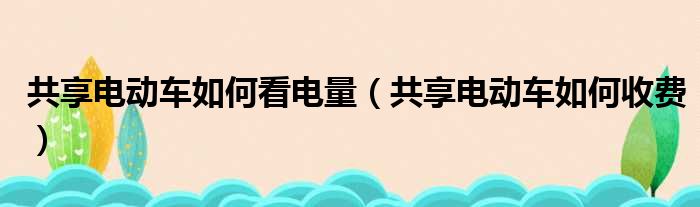 关于共享电动车如何看电量,共享电动车如何收费的介绍到此结束,希望对大家有所帮助。