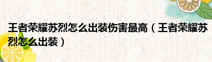 关于王者荣耀苏烈怎么出装伤害最高,王者荣耀苏烈怎么出装的介绍到此结束,希望对大家有所帮助。