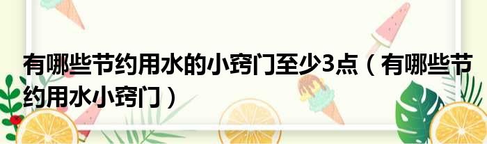 关于有哪些节约用水的小窍门至少3点,有哪些节约用水小窍门的介绍到此结束,希望对大家有所帮助。