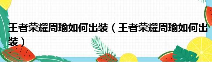 大家好,小皮来为大家解答以上问题。王者荣耀周瑜如何出装,王者荣耀周瑜如何出装这个很多人还不清楚,现在一起跟着小编来瞧瞧吧!
