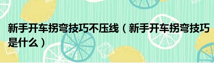 大家好,小皮来为大家解答以上问题。新手开车拐弯技巧不压线,新手开车拐弯技巧是什么这个很多人还不清楚,现在一起跟着小编来瞧瞧吧!