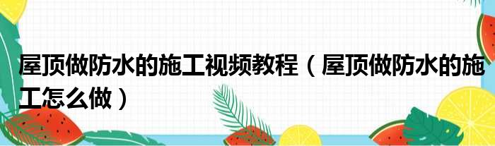 关于屋顶做防水的施工视频教程,屋顶做防水的施工怎么做的介绍到此结束,希望对大家有所帮助。