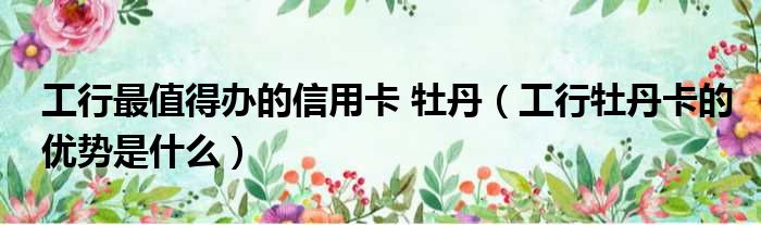 大家好,小皮来为大家解答以上问题。工行最值得办的信用卡 牡丹,工行牡丹卡的优势是什么这个很多人还不清楚,现在一起跟着小编来瞧瞧吧!