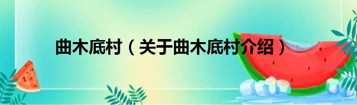 关于曲木底村到此分享完毕,希望能帮助到您。