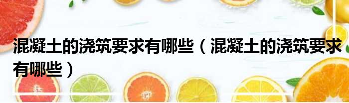 关于混凝土的浇筑要求有哪些,混凝土的浇筑要求有哪些的介绍到此结束,希望对大家有所帮助。