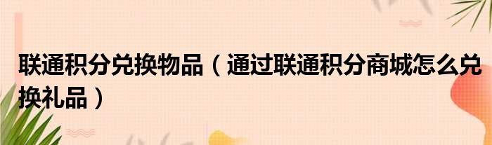 关于联通积分兑换物品,通过联通积分商城怎么兑换礼品的介绍到此结束,希望对大家有所帮助。