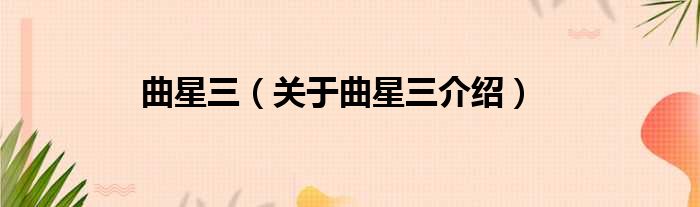 免责声明:本文由用户上传,如有侵权请联系删除!大家好,小钱来为大家解答以上的问题。曲星三,关于曲星三介绍这个很多人还不知道,现在让我们一起来看看吧!