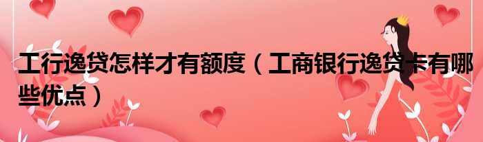 大家好,小皮来为大家解答以上问题。工行逸贷怎样才有额度,工商银行逸贷卡有哪些优点这个很多人还不清楚,现在一起跟着小编来瞧瞧吧!