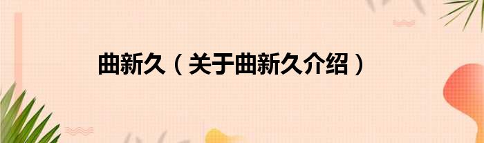 免责声明:本文由用户上传,如有侵权请联系删除!大家好,小钱来为大家解答以上的问题。曲新久,关于曲新久介绍这个很多人还不知道,现在让我们一起来看看吧!