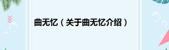 大家好,小钱来为大家解答以上的问题。曲无忆,关于曲无忆介绍这个很多人还不知道,现在让我们一起来看看吧!