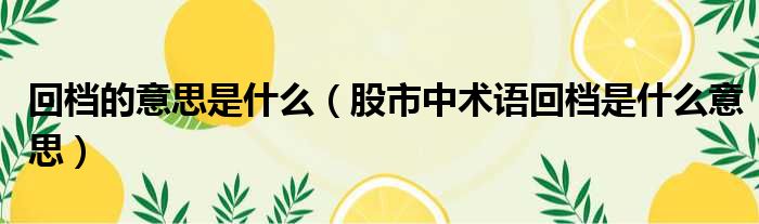 关于回档的意思是什么,股市中术语回档是什么意思的介绍到此结束,希望对大家有所帮助。