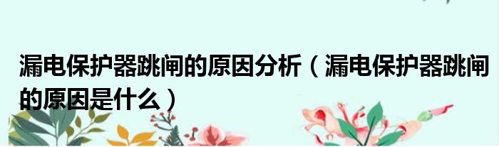 关于漏电保护器跳闸的原因分析,漏电保护器跳闸的原因是什么的介绍到此结束,希望对大家有所帮助。