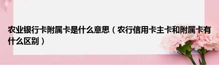 大家好,小皮来为大家解答以上问题。农业银行卡附属卡是什么意思,农行信用卡主卡和附属卡有什么区别这个很多人还不清楚,现在一起跟着小编来瞧瞧吧!